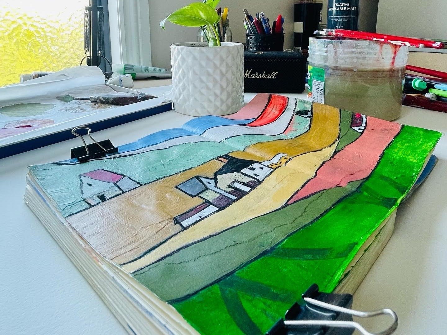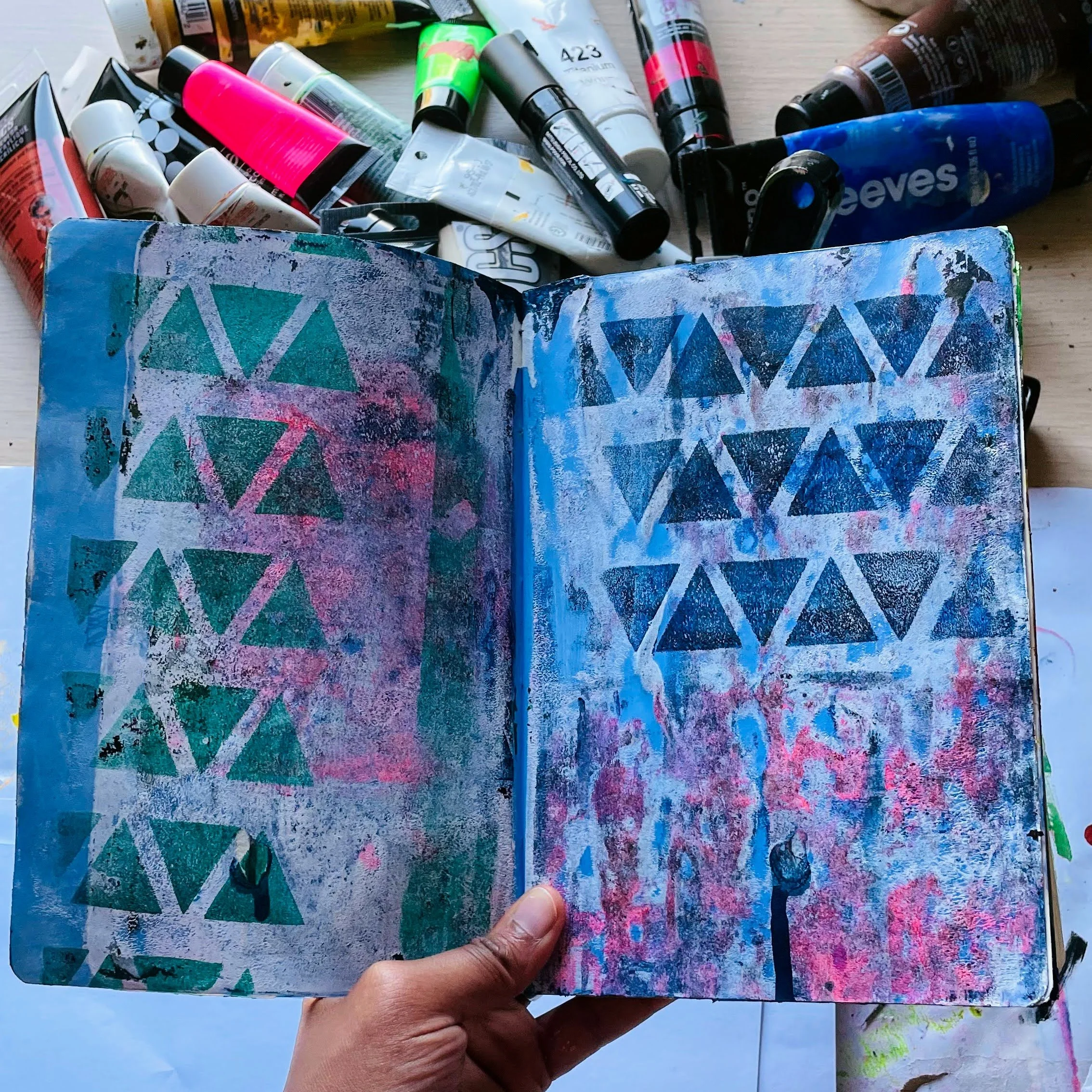 When I first saw some artists using Gelli plate on Instagram, I wasn’t interested. I was deep into watercolours back then and trying to upskill there. I was doing a lot of house portraits and watercolour exercises in my sketchbooks. But somewhere down the road, I felt the need for something more in my art practice. That’s when I decided to take the FYJ 2023 , a 10-week course taught by a UK artist, Louise Fletcher.